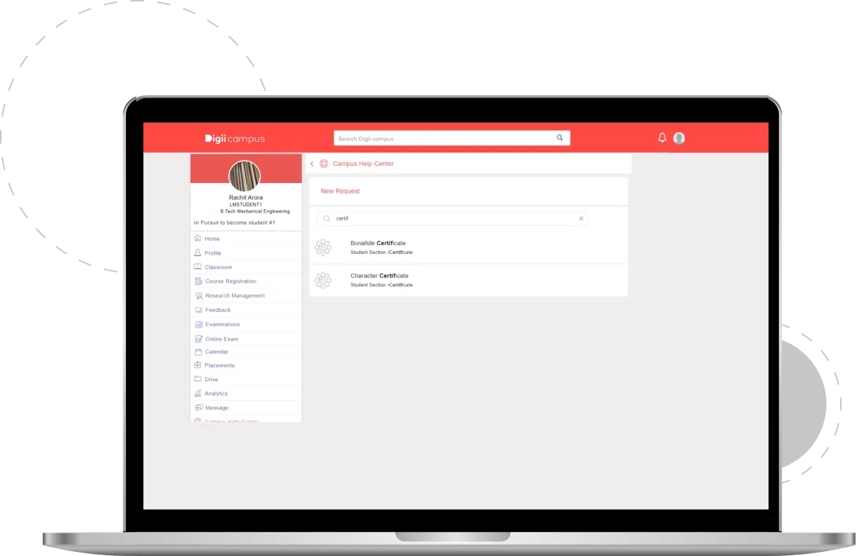 Digiicampus’ Help Center is designed to manage all grievances in compliance with all UGC and AICTE guidelines to automate 1000+ campus workflows, manage and track students’ requests for different services, and much more.