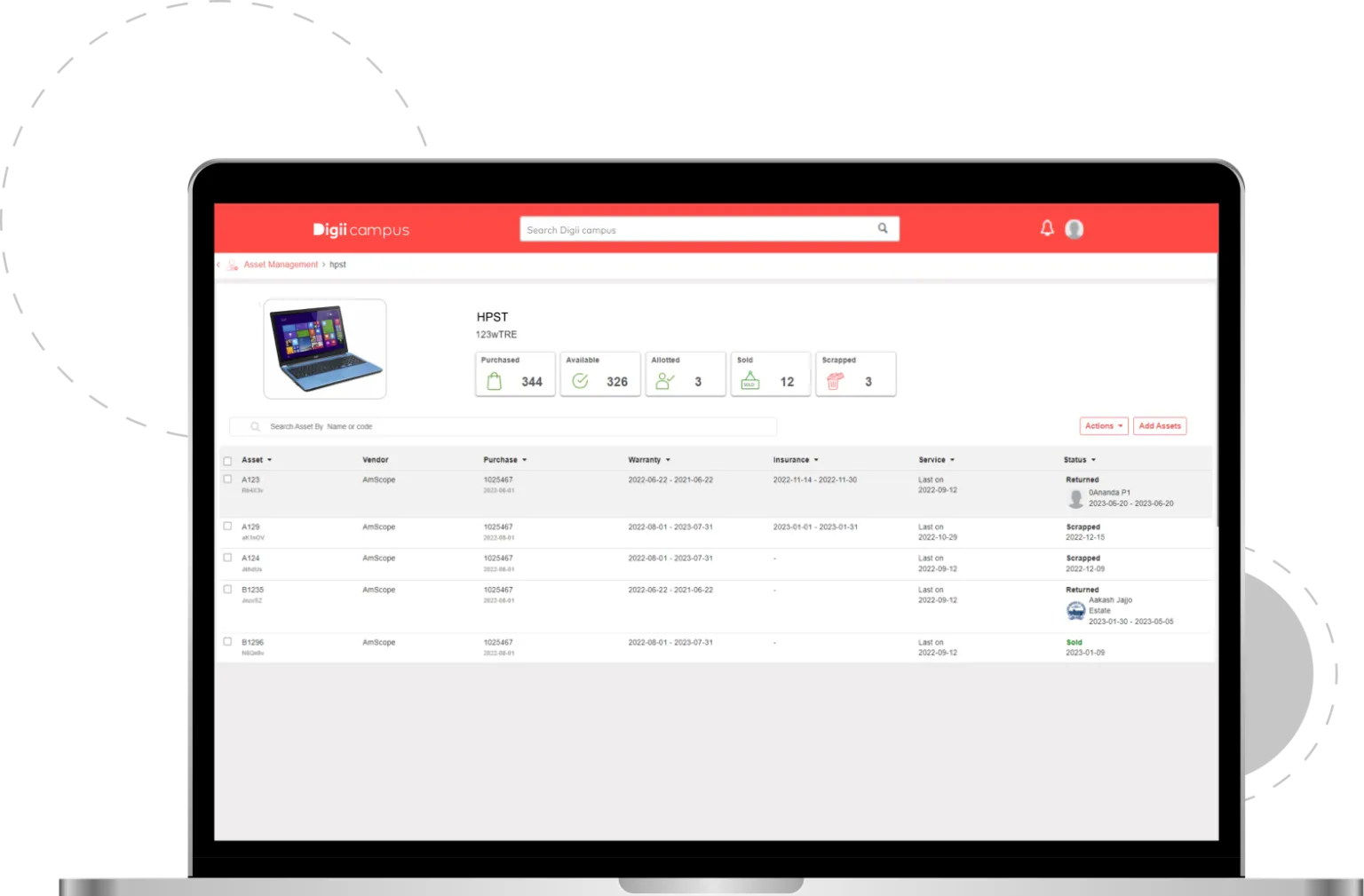 Digiicampus’ Asset Management module makes it easier for institutions to manage and track their assets. Moreover, it makes handling assets effortless, simple, and effective and gives access to real-time data.