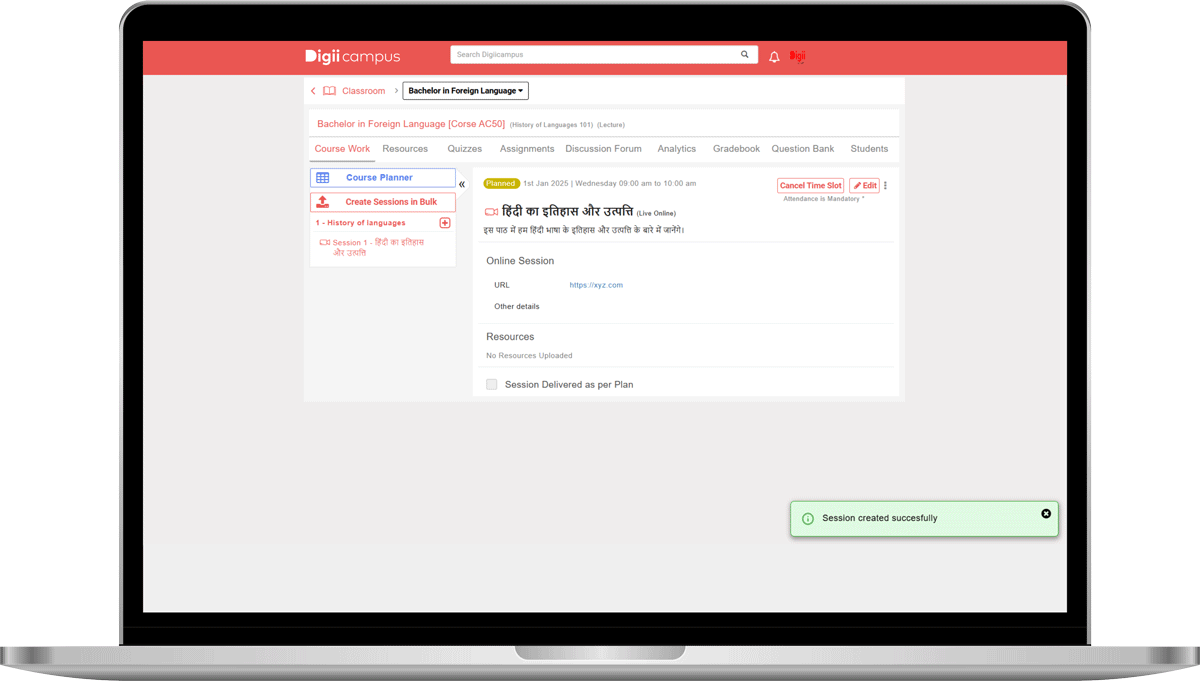Digii Classroom now enables faculty and students to interact in their preferred language, enhancing learning experiences with greater personalization and ease. This update is integrated across all major submodules, ensuring a seamless user experience.