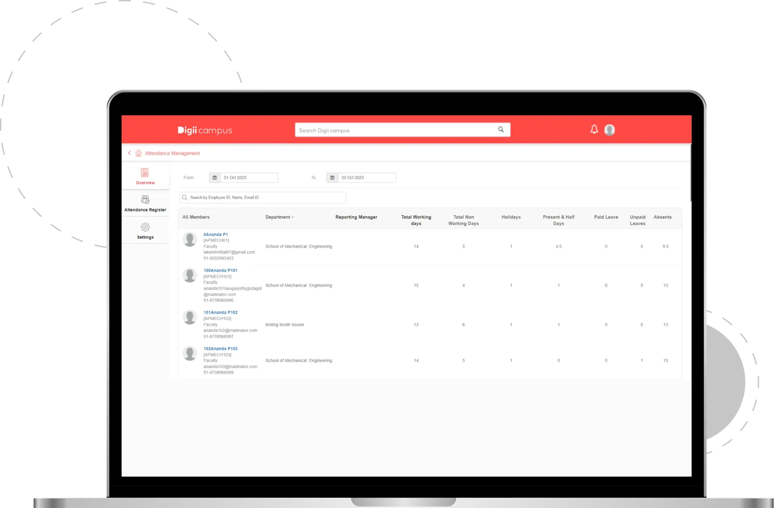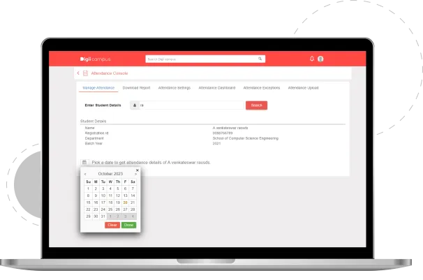 Digiicampus’ Attendance Management System replaces manual methods and provides real-time access to attendance status through a centralized system.