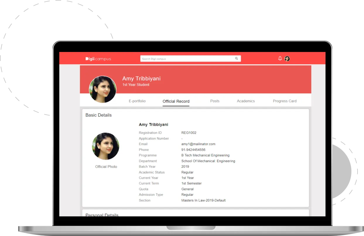 - Students can view personal details & contact information